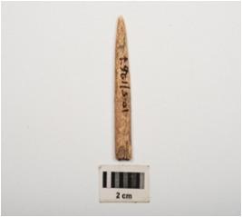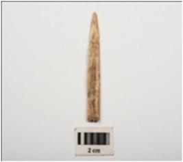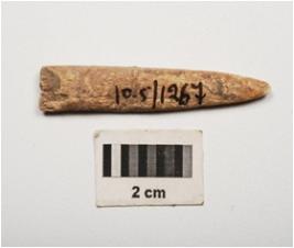 | Description / विवरण | A bone point, made on a animal bone, unpolished rough surface, slightly broken. |
