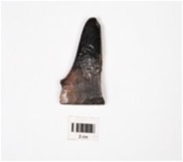 | Description / विवरण | A modified charred bone tool with polished surface. |