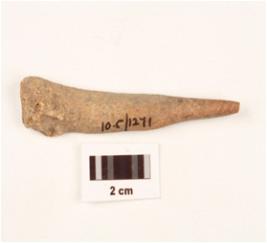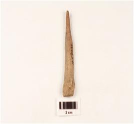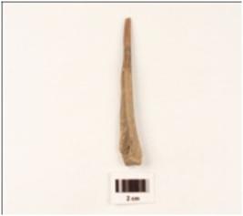 | Description / विवरण | A charred bone point, intact distal end, tip of the point is broken, polished, hollow side visible. |