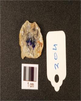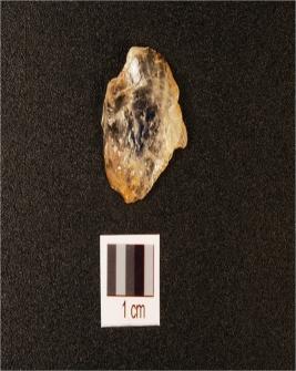 | Description / विवरण | A rock crystal scraper with flake scars on dorsal, use wear marks on working edge and translucent. |