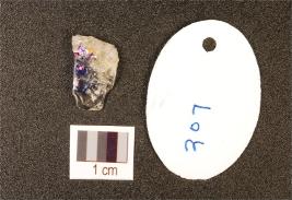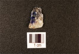 | Description / विवरण | A rock crystal flake with flake scars on surface and use wear marks on working edge, translucent. |