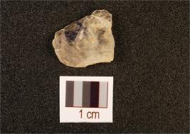 | Description / विवरण | Rock crystal flake with use wear marks on working edge and prepared platform, flake scars on dorsal and translucent. |