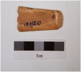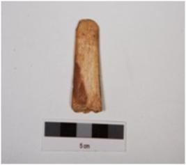| Description / विवरण | A scraper made on bone, half broken, sharp edge and well polished surface. |