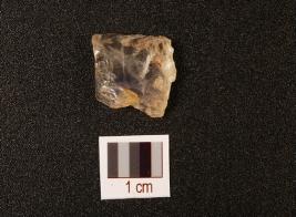 | Description / विवरण | A rock crystal flake with flake scars on dorsal side and use-wear marks on working edge. Smooth ventral and translucent. |