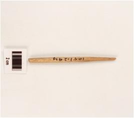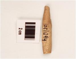 | Description / विवरण | A narrow bone point, polished, intact distal end, chipped off proximal end, partly rough surface. |
