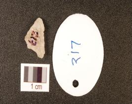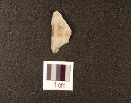 | Description / विवरण | A rock crystal flake with flake scars on dorsal and use-wear marks on working edge, translucent. |