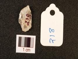 | Description / विवरण | A rock crystal flake with flake scars on surface and use wear marks on working edge, translucent. |