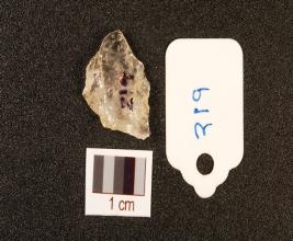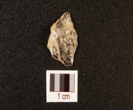 | Description / विवरण | A rock crystal scraper with flake scars on dorsal and use wear marks on working edge, translucent. |