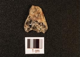 | Description / विवरण | A rock crystal blade with two ridge on dorsal and cortex on surface, use wear marks on working edge and translucent. |