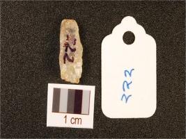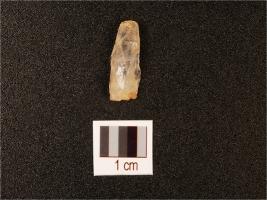 | Description / विवरण | A rock crystal with two ridge on dorsal and smooth surface, trapezoid in section, use wear marks on working edge and translucent. |
