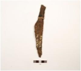 | Description / विवरण | Fragments of an iron sickle, broken into two pieces, uneven surface and edges. |