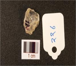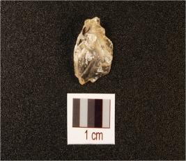 | Description / विवरण | A rock crystal blade with single ridge on dorsal and use wear marks on working edge. |