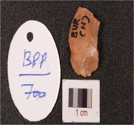 | Description / विवरण | Quartz waste flake, cortex on dorsal sides, irr-regular shaped rugged surface, sides scrapper use wear marks along the cutting edges. |