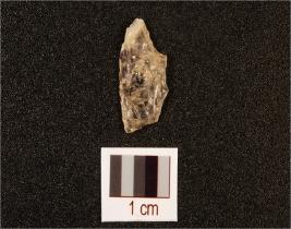 | Description / विवरण | Rock crystal flake with flake scars on dorsal and use wear marks on working edge, smooth ventral and translucent. |