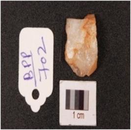 | Description / विवरण | Quartz waste flake, square shaped, rugged surface. |