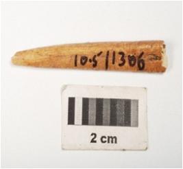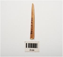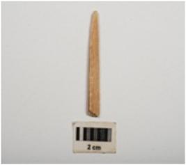 | Description / विवरण | An awl, made from bone, one side broken smoothly polished surface. |