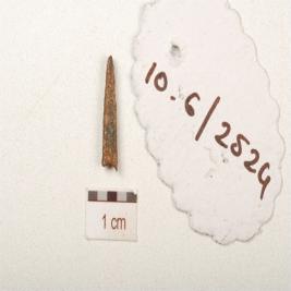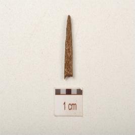 | Description / विवरण | Fragment of copper pin, smooth surface with a pointed end, broken from other end, chemically treated and rectangular in section. |