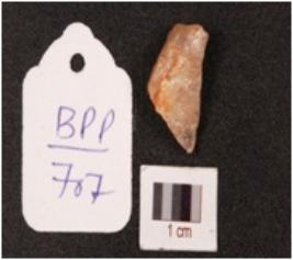 | Description / विवरण | Quartz waste flake with irr regular shaped slightly pointed at one end and other are blunt with rugged surface. |