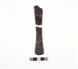 | Description / विवरण | Fragments of iron chisel, broken from middle, narrow from middle, broad and flat from top and bottom, improper edges, rough surafce. |