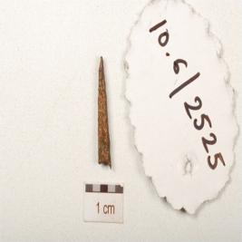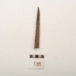 | Description / विवरण | Fragment of copper pin, smooth surface with a pointed end, broken from other end, chemically treated and rectangular in section. |