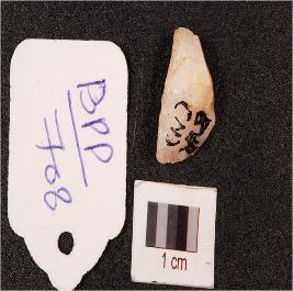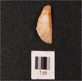 | Description / विवरण | Quartz waste flake with triangular shaped rugged surface. |
