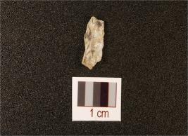 | Description / विवरण | A rock crystal blade with prominent single ridge on dorsal and triangular in section, use wear marks on working edge and translucent. |