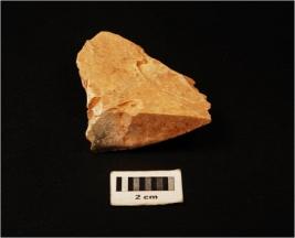 | Description / विवरण | Side scraper with a working edge, positive bulb seen on surface, retouches visible on surface. |