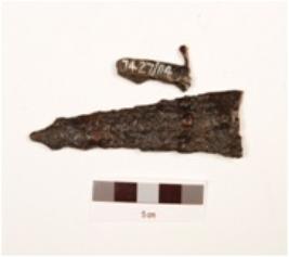 | Description / विवरण | Fragments of an iron arrow head, broken into two pieces, pointed top, broken rod. |