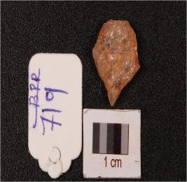 | Description / विवरण | Quartz waste flake with pointed at one end, irregular shape, rugged surface. |