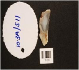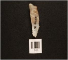 | Description / विवरण | A blade has flake scars, cortex and band on the surface and use wear marks on the cutting edge. |