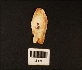 | Description / विवरण | End struck side scraper with a positive bulb on one end. Flake scars visible on surface. |