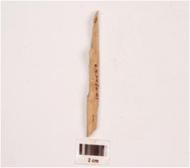 | Description / विवरण | Fragment of a determinate tool, triangular in section, polished both sides, slightly broken both end. |