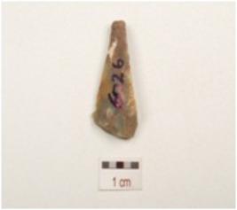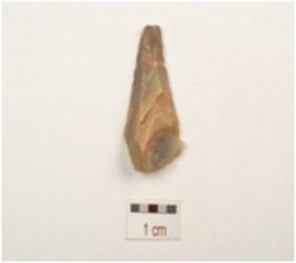 | Description / विवरण | Chalcedony blade with double ridge on dorsal, trapezoidal in section, diffused bulb on ventral, use wear marks on cutting edge and broken along distal end. |