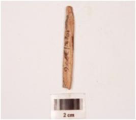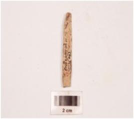 | Description / विवरण | Fragment of a bone point, polished both sides, slightly broken both ends, smooth surface at one side. |
