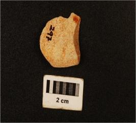 | Description / विवरण | Side struck side scraper with a working edge on side, positive bulb visible near the striking platform, slightly broken. |