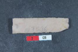 | Description / विवरण | A rectangular parallel sided blade with positive bulb of percussion on ventral side. It has two dorsal ridges and smooth surface. |