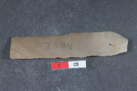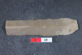 | Description / विवरण | A rectangular parallel sided blade with positive bulb of percussion on ventral side. It has one dorsal ridge and smooth surface. |
