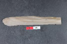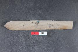 | Description / विवरण | A rectangular parallel sided blade with positive bulb of percussion on ventral side. It has two dorsal ridges and smooth surface. |