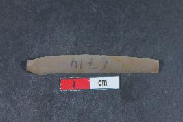 | Description / विवरण | A rectangular parallel sided blade with positive bulb of percussion on ventral side. It has one dorsal ridges and smooth surface. |