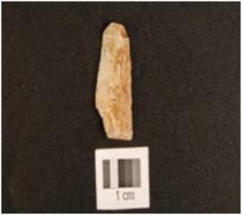 | Description / विवरण | A chert blade, flake scars on the surface, prepared platform on the proximal end ,prominent bulb on the ventral and use wear marks on edge. |