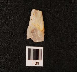 | Description / विवरण | A parallel sided flake, made on quartz, plain ventral and dorsal, use wear marks on edges, defused bulb on proximal end. |