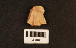 | Description / विवरण | Core with a one end broken, three blade scars on surface, positive bulb on one side. |