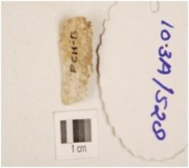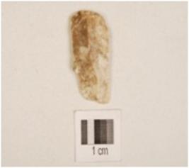| Description / विवरण | A chert blade, flake scars on the surface, prominent bulb on the ventral side, prepared platform on the proximal end and sharp cutting edges. |