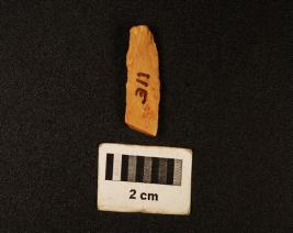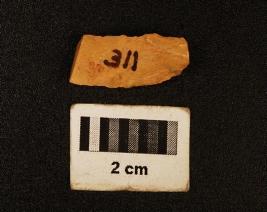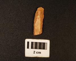 | Description / विवरण | Blade with parallel working edges, striking platform visible on proximal end. Blade scars visible on dorsal end, positive bulb visible on ventral side. |
