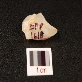 | Description / विवरण | A small knife shaped flake, made on quartz, flake marks are visible, retouch cutting edges. |