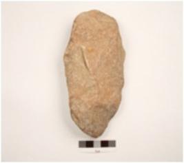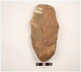 | Description / विवरण | A handaxe made on end struck quartzite flake, flake scars on both sides, wavy marks on cutting edge, biconvex in section. |