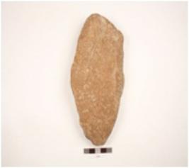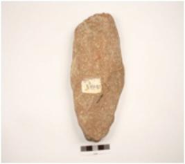 | Description / विवरण | A cleaver made on side struck quartzite flake with broade cutting edge, flake scars on one side, plano-convex in section. |