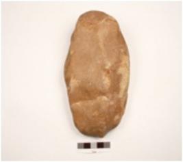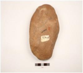| Description / विवरण | A cleaver made on side struck quartzite flake with broade cutting edge, flake scars on both sides, biconvex in section. |