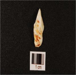 | Description / विवरण | A small knife shaped flake, ridge on dorsal, flake marks are visible, defused bulb on proximal end, use wear marks on edges. |