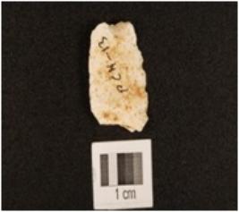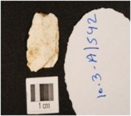 | Description / विवरण | Utilized flake with wear marks on one working edge. |